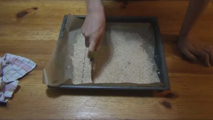 Następnie, w misce, połącz podprażony sezam z wybranym naturalnym słodzikiem, takim jak syrop klonowy lub stewia. Dokładnie wymieszaj składniki, aż uzyskasz jednorodną masę. Następnie, przełóż mieszankę na papier do pieczenia lub do formy, a następnie rozwałkuj ją na grubość około 1 cm. Upewnij się, że masa jest równomiernie rozłożona, aby sezamki miały jednakową grubość.